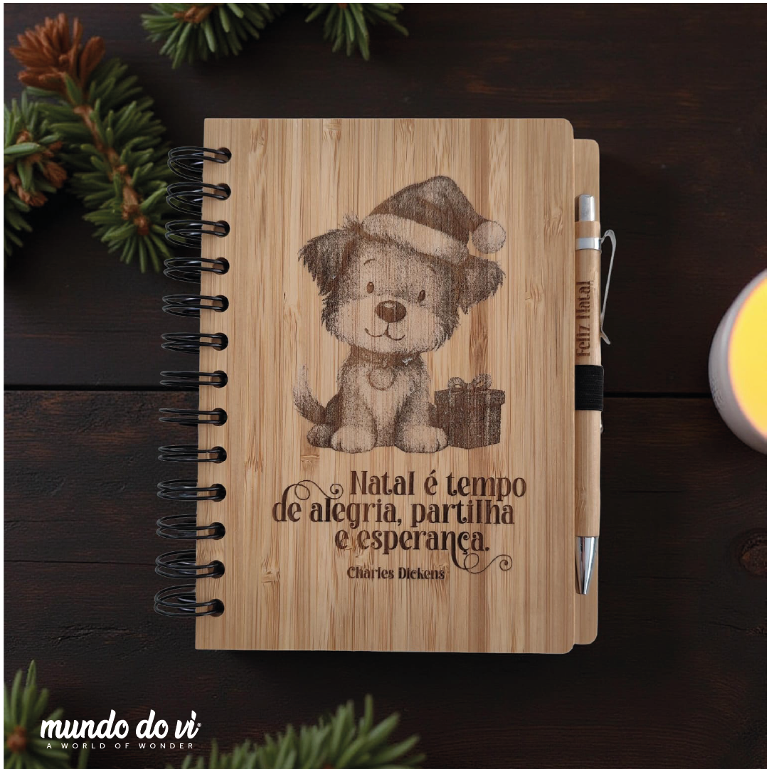 Gravado em capa de bambu natural, este bloco junta uma mensagem intemporal a um desenho cheio de ternura, criando uma prenda especial — feita para guardar palavras, pensamentos e memórias.