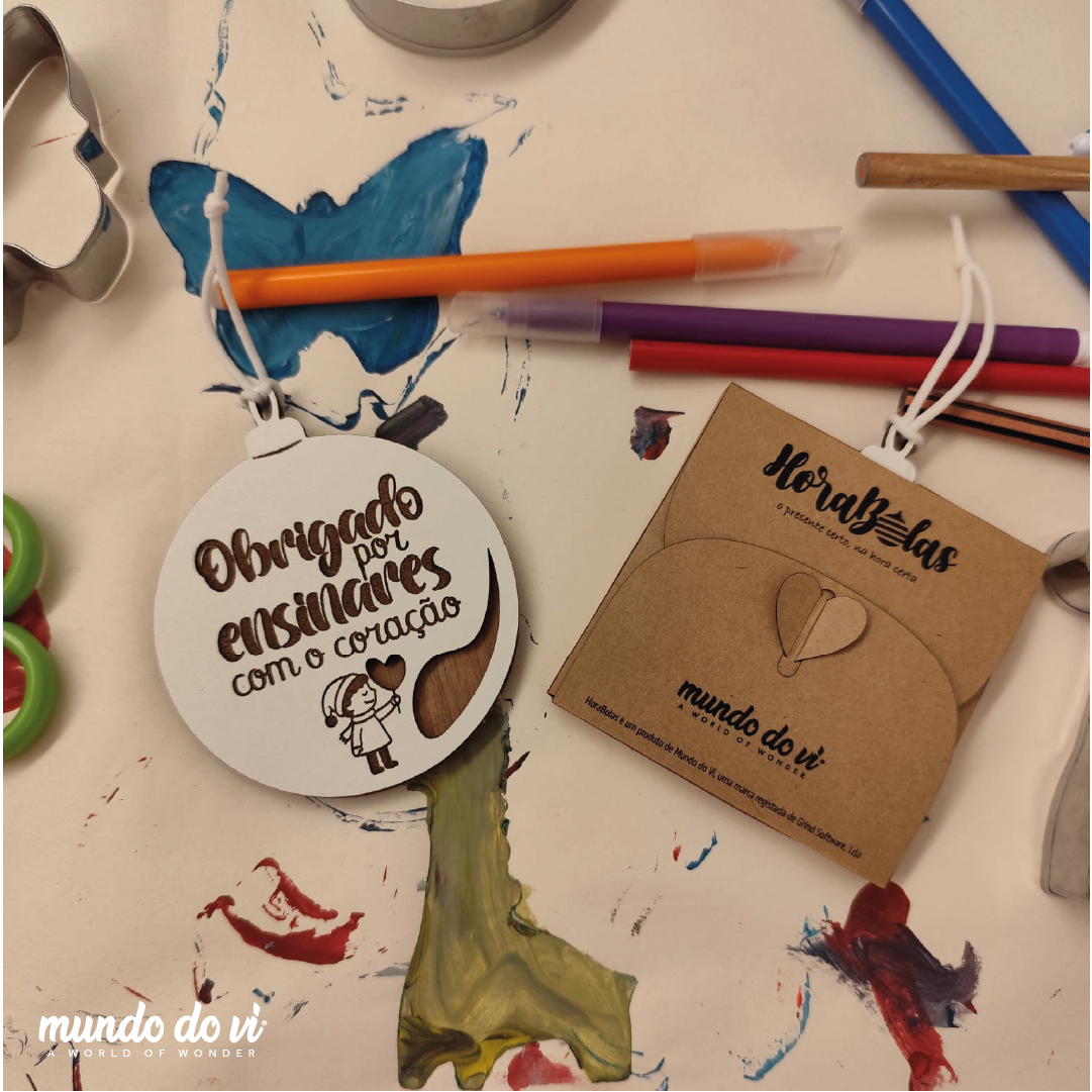 Com o seu design delicado e o toque artesanal do Mundo do Vi, esta peça transmite ternura e autenticidade — perfeita para oferecer a educadoras, auxiliares ou professoras neste Natal.